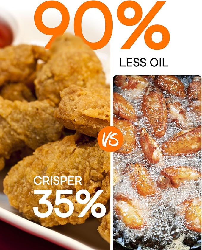 A top-mounted 5-inch high-performance convection fan delivers advanced cyclonic airflow, ensuring fast, even, and extra-crispy results with minimal smoke. Enjoy healthier, oil-reduced meals while saving valuable time in the kitchen.